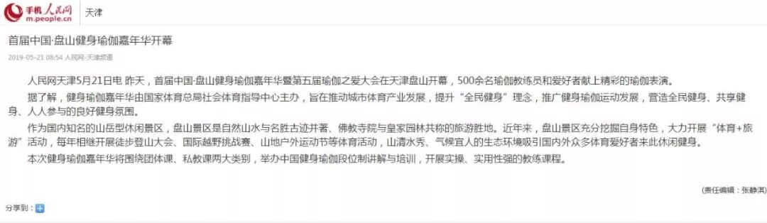 2019盤山健身瑜伽嘉年華,各大主流媒體紛紛報道